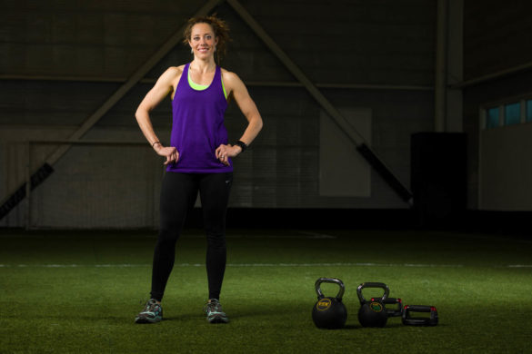 A family photo of Derek Kitchen and Moudi Sbeity and their dog Goji